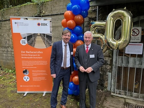 Prof. Dr. Karl-Heinz Erdmann: Als ich vor Ort eintraf, gingen mir viele Erinnerungen durch den Kopf. U. a. fiel mir ein, wie wir mit den Arbeiten zu diesem komplexen Projekt begonnen haben. Im Frühjahr 2020 startete das in Deutschland für den Kulturschutz zuständige und in Bonn-Lengsdorf ansässige „Bundesamt für Bevölkerungsschutz und Katastrophenhilfe“ (BBK) das Projekt „Mikrofilmdokumentation des Kulturguts Karneval“ (MiDoKa). Das Projekt hatte und hat zum Ziel, zentrale und bedeutende Dokumente des Brauchkomplexes „Karneval“ zusammenzustellen und langfristig im Zentralen Bergungsort der Bundesrepublik Deutschland (ZBO), dem Barbarastollen in der Nähe von bei Freiburg im Breisgau, zu sichern. Zahlreiche Treffen fanden im BBK (später, während der Zeit der Coronapandemie, auch im virtuellen Raum) statt, bei denen in großer Runde unter Beteiligung der Festausschüsse aus Aachen, Bonn, Köln und Düsseldorf (A-B-C-D) grundsätzliche inhaltliche wie strategische Fragen der Auswahl geklärt werden mussten. Dis war notwendig, da beim BBK bislang keinerlei Erfahrungen vorlagen, wie auch das immaterielle Kulturerbe Deutschlands langfristig für mindestens 500 Jahren ohne Informationsverlust gesichert werden. Dem Karneval kam damit die verantwortungsvolle Aufgabe zu, einen Weg zu finden, den anschließend auch Vertreter anderer Bräuche und kultureller Ausprägungen bei deren Mikrofilmdokumentation beschreiten können. Im Sommer 2020 wurde dann ein Wissenschaftlicher Beirat etabliert, dem dann die Sichtung und Auswahl der Dokumente aus den Karnevalshochburgen oblag, die auf Mikrofilm abgelichtet und schlussendlich auch eingelagert werden sollten. Für uns, die Vertreter des rheinischen Karnevals war sehr früh klar, dass wir das Vorhaben nur gemeinsam mit Vertretern der „Schwäbisch-Alemannischen Fastnacht“ umsetzen konnten und wollten, mit denen wir bereits an der Beantragung der Aufnahme des Brauchkomplexes „Fastnacht – Fasching – Karneval“ auf die „Repräsentative Liste des Immateriellen Kulturerbes der Menschheit“ der UNESCO arbeiten. So kam es schon sehr früh zu einer inhaltlichen Ausweitung des MiDoKa-Projektes um die Alemannische Fastnacht im Südwesten Deutschlands. Schön war es, alle die Kollegen am Barbarastollen zu treffen, mit denen wir über Jahre um den richtigen Weg beraten und gerungen haben. Ich denke, dass sich das Ergebnis wirklich sehen lassen kann, wird es doch von den Vertretern des rheinischen Karnevals wie auch der Alemannische Fastnacht uneingeschränkt getragen. Und gemeinsam gefeiert, eine Kernkompetenz von Karneval und Fastnacht, haben wir am Barbarastollen natürlich auch.