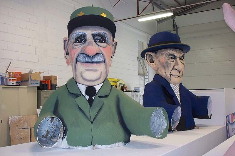 Beide Motto-Entwürfe wurden von der Designerin Ariane Paffenholz und ihrem Kollegen Jörg Liebetrau professionell umgesetzt. Die Pappmaché Figuren für die beiden Wagen wurden in der Werkstatt in Bergisch-Gladbach fertig gestellt und dann per LKW nach Bonn – Tannenbusch ins Haus des Karnevals gebracht. Dort werden die Teile auf die vorbereiteten Plateau-Wagen des Festausschusses montiert