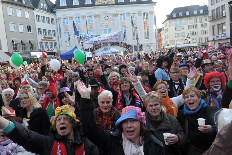 …zeigt sich der Bönnsche Fastlovend von seiner besten Seite. Gut aufgelegte Tollitäten, ein stimmgewaltiger Oberbürgermeister, mehrere Tausend bunt kostümierte Jecke, ein witziger Moderator, der ein Top-Musikprogramm präsentiert und äußere Bedingungen, die besser nicht sein könnten: das sind die Zutaten für einen perfekten Start in die Karnevalssession 2012/2013.