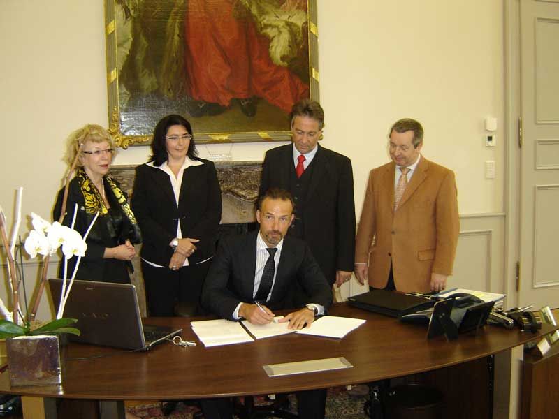 Das designierte Bonner Prinzenpaar der Session 2012/2013, Prinz Dirk I. und Bonna Andrea, I. hat heute (11. Juni 2012), seine Unterschriften unter den Vertrag mit dem Festausschuss Bonner Karneval gesetzt. Nacheinander unterschrieben die künftigen Tollitäten das mehrseitige Vertragswerk, in dem die gegenseitigen Rechte und Pflichten zwischen Prinzenpaar und Festausschuss geregelt sind. Danach unterschrieben die Präsidentin Marlies Stockhorst und Vizepräsident Stephan Eisel den Kontrakt. Die Zeremonie fand unter den Augen von Oberbürgermeister Jürgen Nimptsch in dessen Dienstzimmer im Alten Rathaus statt.
