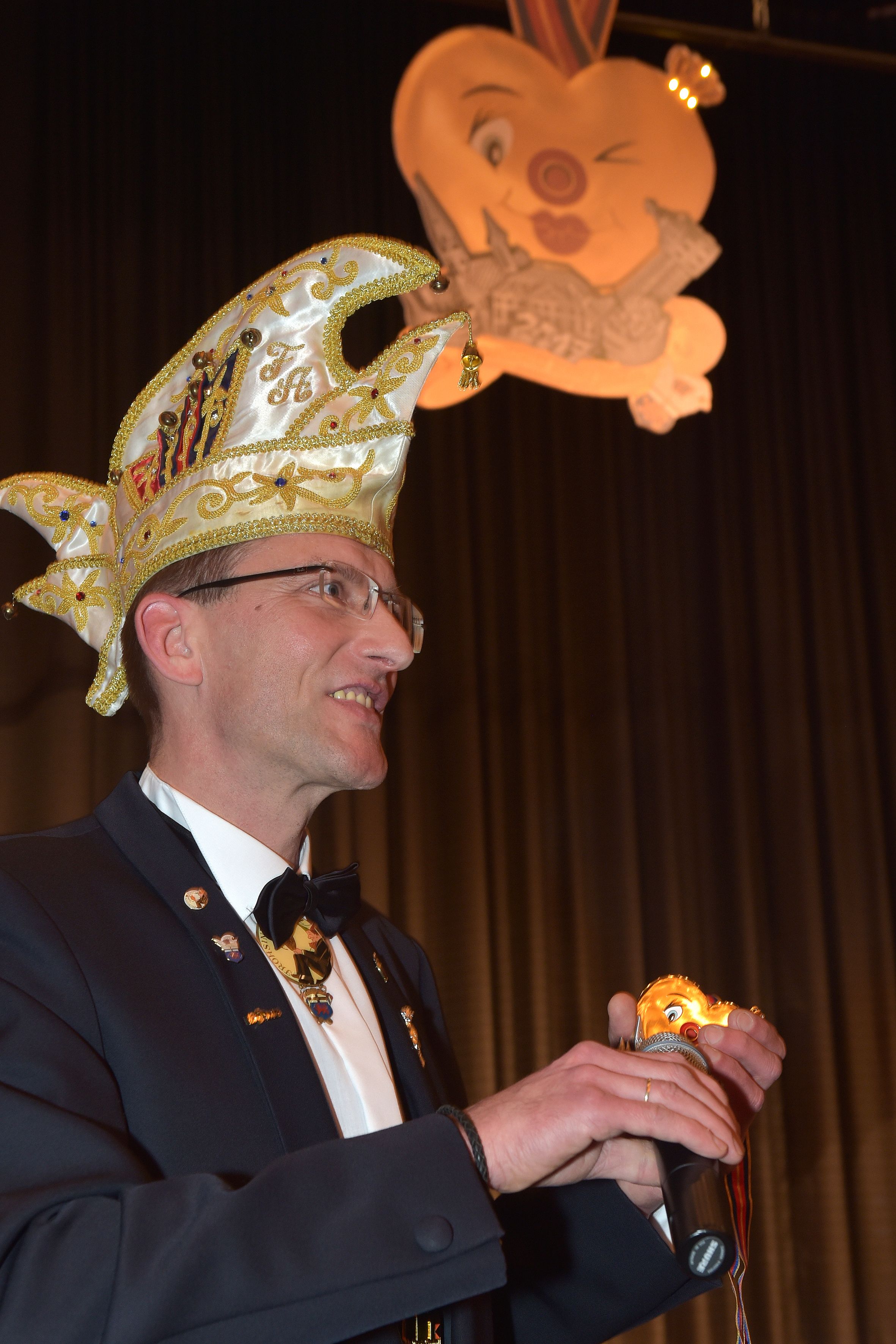 Ganz dem aktuellen Motto entsprechend, präsentierte Ordensmeister Andreas König den neuen Sessionsorden, der ein „kniependes“ Herz (hochdeutsch: „zwinkerndes“)zeigt. Besonderer Gag des Ordens ist der Druck auf die Stupsnase, worauf die ersten Töne von Beethovens 5. Sinfonie und ein Tusch erklingen.
