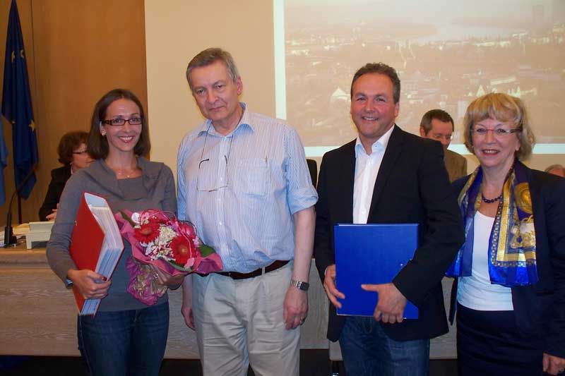 Wolfgang Schmitz-Luck, “Noch-Archivar“ im Festausschuss, er wird das Amt aus privaten Gründen abgeben, überreichte den Ex -Tollitäten eine Dokumentation über die verflossene Session (auf dem Foto 2.von links).