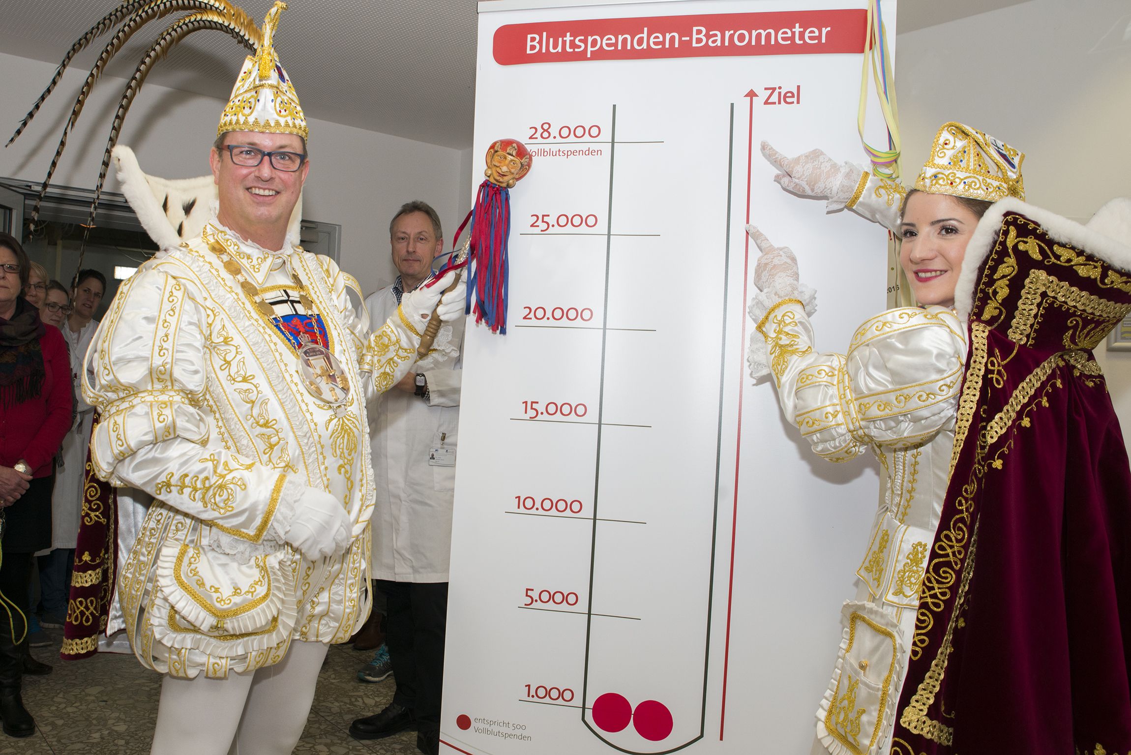 Die Tollitäten eröffneten bei ihrem Besuch auf dem Venusberg das Spendenbarometer 2016, um auf die Notwendigkeit des Blutspendens aufmerksam zu machen.