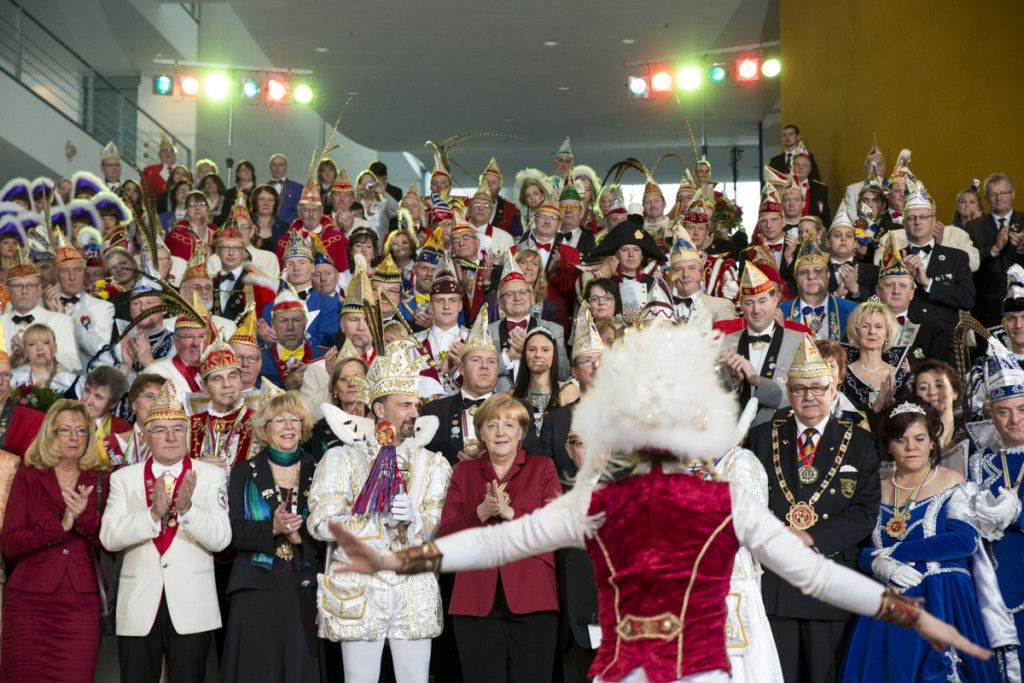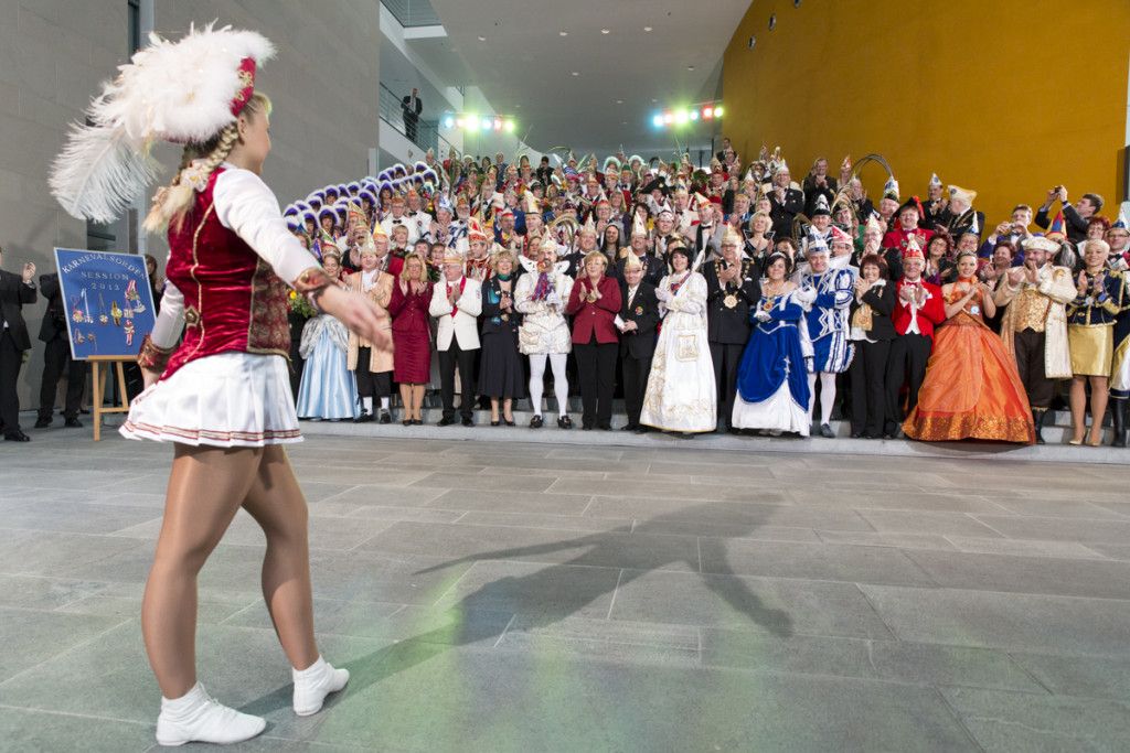 “Berlin ist immer eine Reise wert….” deshalb besuchten die Bonner Tollitäten Prinz Dirk I. und Bonna Andrea I. in Begleitung der Vorstandsmitglieder des Festausschuss Bonner Karneval bereits zum zweiten Mal in 14 Tagen die Bundeshauptstadt. Zusammen mit den Karnevalsrepräsentanten aus den anderen Bundesländern nahmen sie am Empfang im Bundeskanzleramt teil. Der Besuch an der Spree und die Begegnung mit Angela Merkel gehören zu den Höhepunkten im Terminkalender von Prinz und Bonna. Die bunte karnevalistische Narrenfamilie verfolgte zusammen mit der Bundeskanzlerin ein kleines, aber feines Programm, bei dem Gardetanzgruppen und Solomariechen ihre Tänze präsentierten.