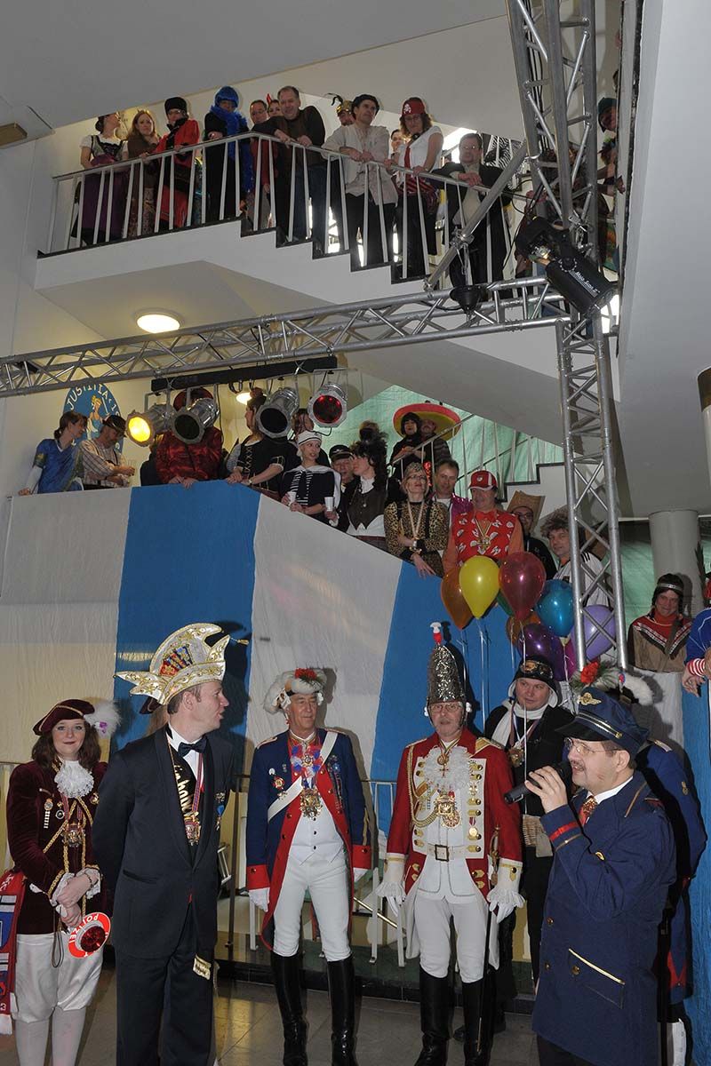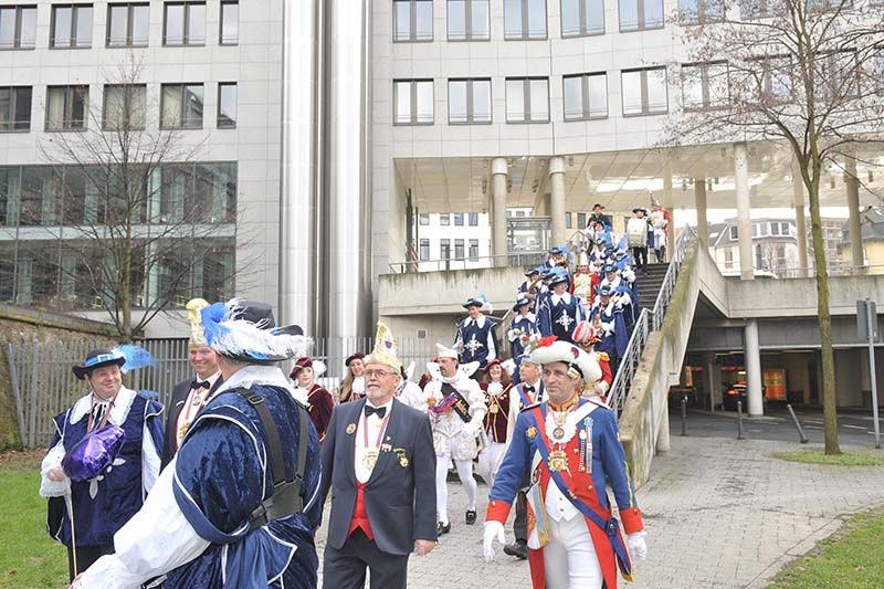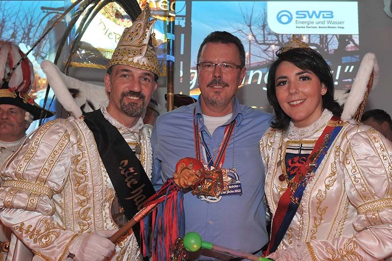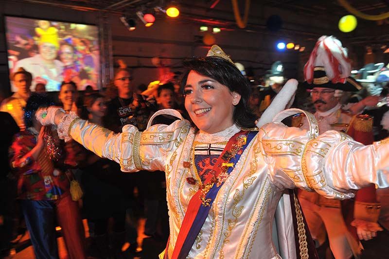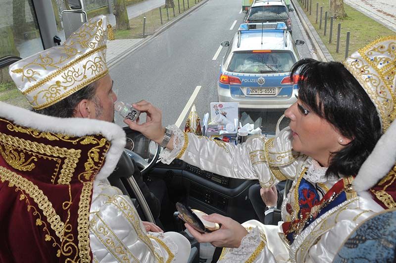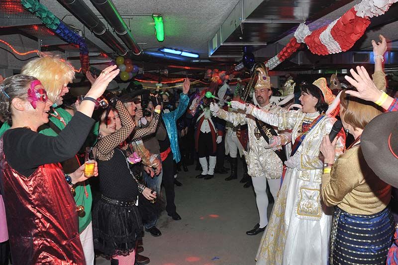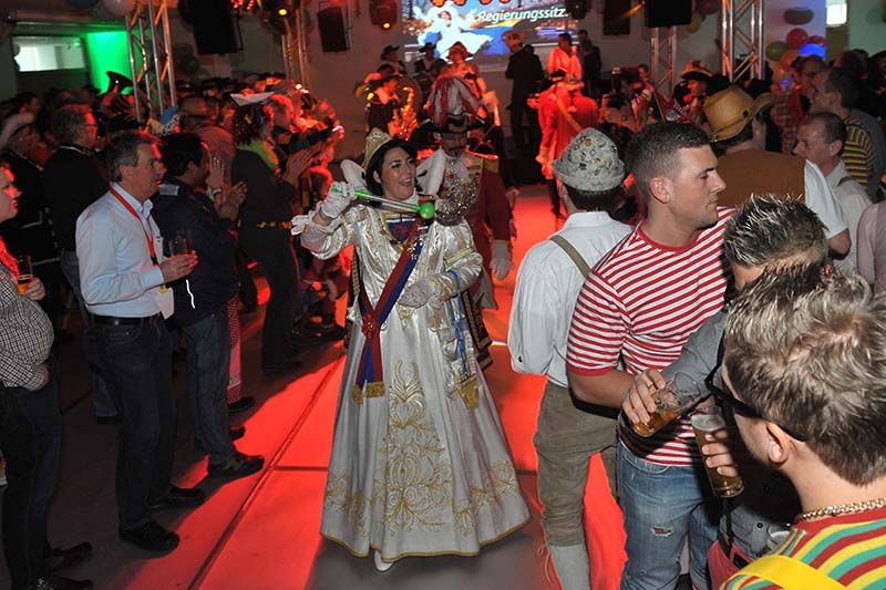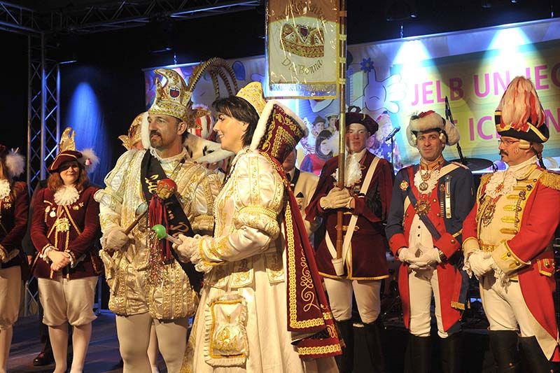 Das Prinzenpaar und seine Equipe hat an Weiberfastnacht ein dicht gestaffeltes Besuchsprogramm zu absolvieren: Von morgens um Neun bis Abends um Neun geht es zwölf Stunden Nonstop zu den Parties in Behörden und Unternehmen, darunter auch die Bonn ansässigen „Daxe“ Deutsche Telekom und Deutsche Post, zu Karnevalssitzungen in Schulen, Seniorenheimen und zum Kaffeeklatsch der Damenkomitees. Mit dabei eine große bunte Musikertruppe in Musketier-Kostümen, die sich aus Mitgliedern des Musikvereins Duisdorf und der Bornheimer Schützenkapelle rekrutieren. Die Stabführung an Weiberfastnacht hat stets Christoph von Heydebrand. Wenn der Tour-Bus voller Narren dann abends zur Hofburg zurückkehrt werden Prinz und Bonna Kontakt zu mehr 10.000 Jecken aus Bonn und der Region gehabt haben.